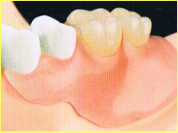コーヌスデンチャーは、入れ歯と被せものが1つになった入れ歯です。残っている複数の歯を土台にして装着するため、噛む力がバネで支える歯だけに加わり大きな負担となることがありません。審美性に優れ、清潔で、従来の入れ歯に比べて違和感なく使えるのが特徴です。